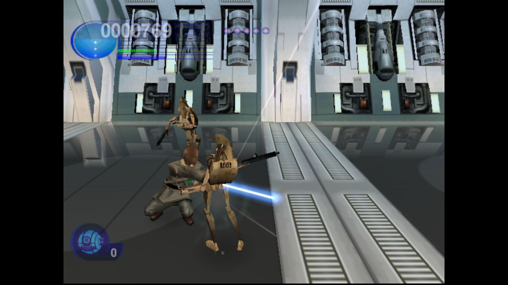 To start you have a choice of five Jedi: Obi Wan, Qui-Gonn Jin, Mace Windu, Plo Koon, and Adi Gallia. Aside from their differences in power and speed each character has a special item and three unique force powers. Regardless of character you have a lot of options. Deflecting blaster fire is one of the most important skills you must learn early. Simply blocking will send shots willy nilly and deplete your stamina rapidly. Well timed blocks will send them back and usually result in one shotting enemies, usually droids. Combat is fairly involved as you have three attack buttons and can perform combos with different combinations of attacks. As you progress you will unlock more combos. At its core the game does a good job of making you feel like a Jedi. It also encourages multiple runs with different characters.