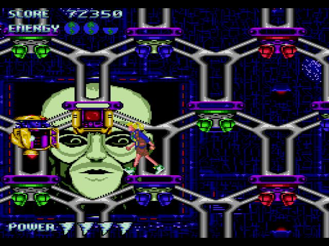 Captain Planet has five stages initially that you can play in any order. But here is the rub: you do not get to pick which planeteer to use in each one. Instead the game randomly assigns one for each stage. While you might be thinking this ruins the strategy of pairing a given planeteer’s unique power in particular stages forget it. That is because of the game’s mechanics. Your main attack is elemental, true. However each shot uses planet power which does not regenerate. Once planet power depletes you can only fire weak single shots that are all but useless. The game is stingy with the power-up that restores it which makes it even worse. Most of the appeal of the game is using each hero’s elemental abilities and the game gimps them right out of the gate which is stupid.