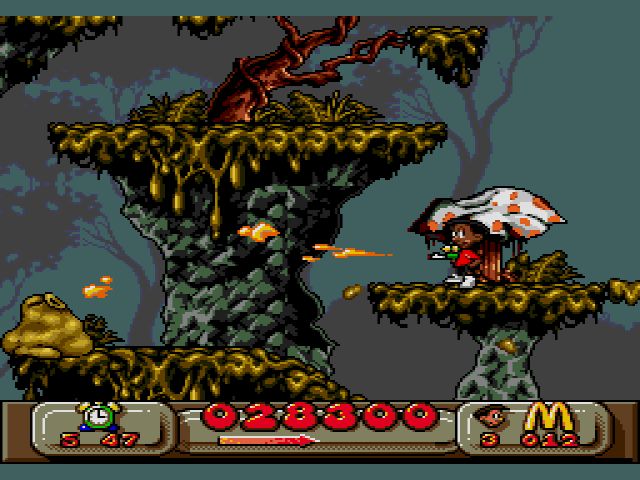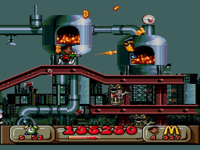 Even though Global Gladiators has the McDonalds license you would be hard pressed to tell. The art direction is gritty, dark, and mostly devoid of color. It lightens up a bit in the Arctic World but only just. They pound the environmental message into you to its detriment as it gets tiring to look at. Outside of the Golden Arches and Ronald McDonald appearing at the end of every level you would never know McDonalds put their stamp on this game. That was intentional, according to the developers. Their goal was to make a good game first. Whether they succeeded at that is up for debate.