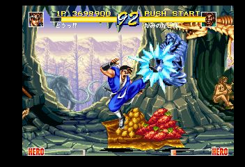 Mechanically World Heroes Perfect has a lot going on under the hood. Its numerous subsystems rival the later Street Fighter games and makes for cerebral matches. The reflecting system from the prior games has been expanded significantly. Shot breaks are normal attacks that destroy projectiles while others guard crush and leave the opponent vulnerable. Air blocking and back dashes give you more defensive options but there are new offensive techniques too. ABC special moves differ per character; Dragon can alpha counter while blocking while Jack can dig underground to avoid attacks. The Hero Gauge is the super meter. Once full you can either empower a special move or pull off a crazy death blow. Good luck with that last one, the button combos are the epitome of SNK bullshit.