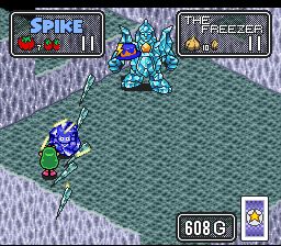 Spike McFang was released during an era where video game rentals were extremely popular. The original Japanese version, Chō Makai Taisen! Dorabotchan is short, extremely easy and over in about three hours which is brief for an action RPG. To combat this Bullet Proof Software increased the difficulty in a few ways. The enemies have significantly higher defense, making even the simplest onions in the opening a slog to kill. It only gets worse as you progress. You also do not regain your full health when leveling up, necessitating constantly returning to the shop keeper to buy items. This is a game where you need to level up as it is the only means to raise attack and defense. Now however it is a tedious grind designed to extend the length of the game. It does so but ruins the experience in the process.
