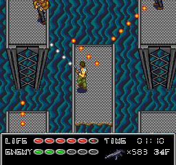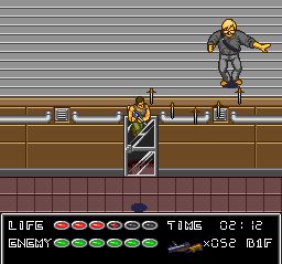 Although Die Hard follows the movie for the most part it does deviate a little bit for the sake of variety. You begin outside of Nakatomi Plaza and make your way toward the tower for the first few levels. You explore the grounds surrounding the building and the moat before entering the Plaza itself. From there it becomes relatively straightforward outside of stage three’s maze. And to be honest the game is simply not terribly interesting at this point. Enemy AI is basic; they walk toward you, fire in your direction, and that is it. There is some light platforming that is very out of place and does not accomplish its job of varying the gameplay. Once you run through a few floors the game becomes repetitive and boring.